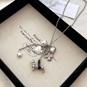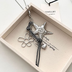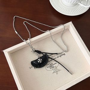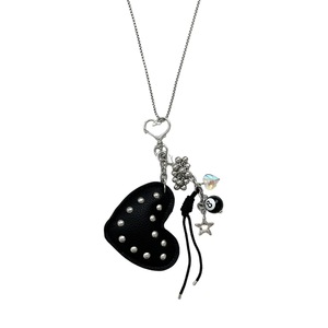 ブラック レザー コード 中空メタル バッグ ネックレス