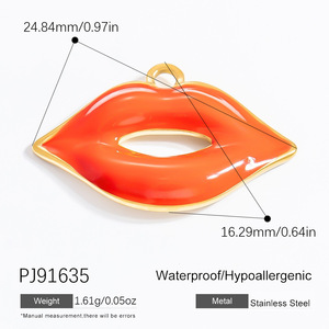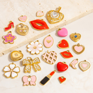 跨境不锈钢DIY饰品配件滴油爱心项链吊坠花朵蝴蝶结口红挂件18K金