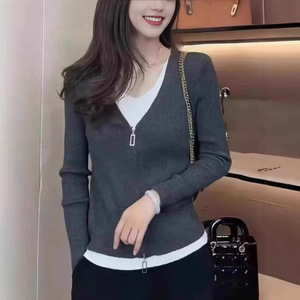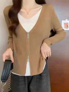 2025新款针织衫女秋季减龄针织开衫显瘦洋气小个子拉链假二件上衣