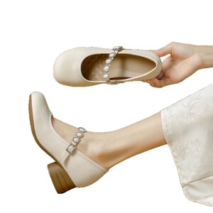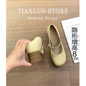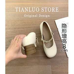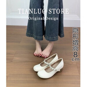 女性用フレンチスタイルの身長を伸ばすメリージェーンシューズ、2025年の新しいファッションスタイル、多用途で優しい、スカート付き、おばあちゃんのビーニーシューズ