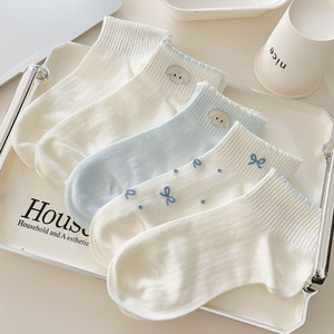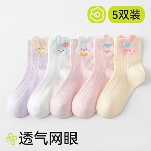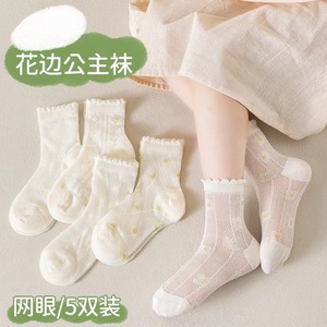 女の子靴下夏薄い子供用ミッドカーフソックスリボン付き中型および大型子供用女の子ロリータスイートプリンセスソックス春と夏