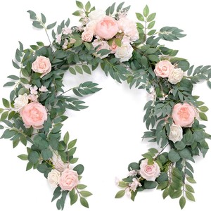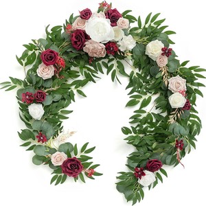 仿真花人造假花尤加利仿真玫瑰桉树花藤条婚礼桌椅装饰花藤厂家批