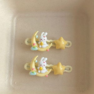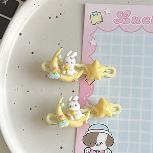 坐在月亮上的兔子发夹 可爱甜美少女心星星学生刘海边夹头饰卡子