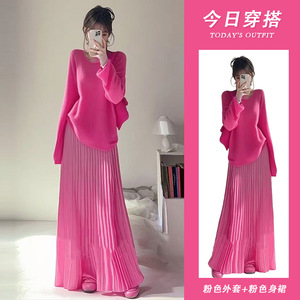 玫红色减龄多巴胺穿搭套装女新款防晒上衣搭配高腰半身裙两件套