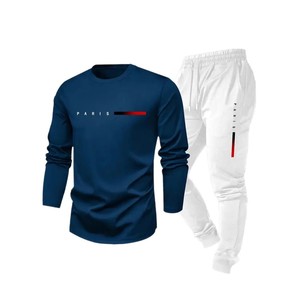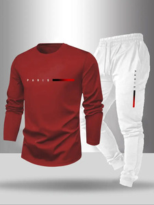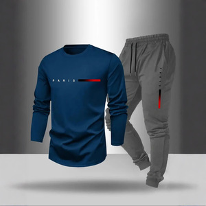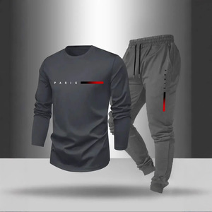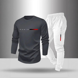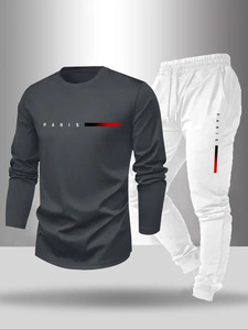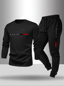 春秋跨境欧码男装男士字母印花男子长袖圆领休闲T恤衫卫裤套装
