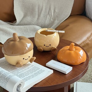 厂家直销可爱卡通陶瓷栗子烟灰缸家用办公室客厅装饰摆件收纳