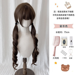 罗马卷假发女长发Lolita长卷发榛果灰棕少萝扎好双马尾假发全头套