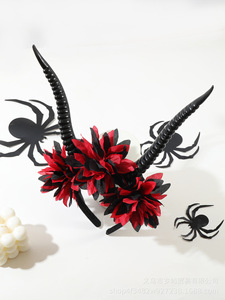 ハロウィン悪魔の角ヘッドバンド cos 悪魔魔女ドレスアップ頭飾り模擬花悪魔の角ヘッドバンド