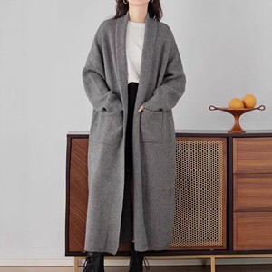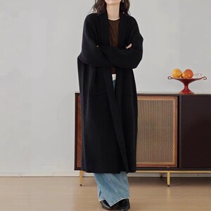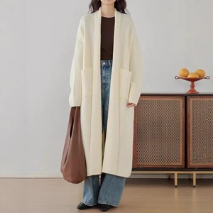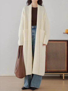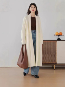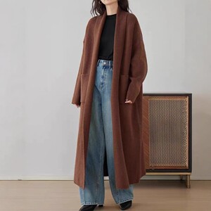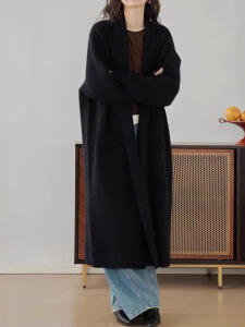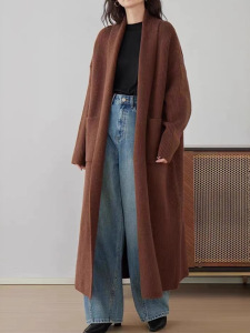 韓国スタイルのレイジースタイルの女性用ミドル丈セータージャケット、秋冬の新しいスタイル、ハイエンド、ゆったり、柔らかくワックスのような膝丈ニットカーディガン