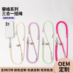 新款三合一手机挂绳可拆卸斜跨手腕款户外运动挂绳防摔防丢编织绳
