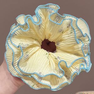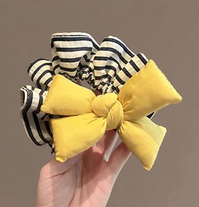 柏林落日~ 韩系黄色条纹大肠发圈女高级感发饰法式丸子头超大头绳