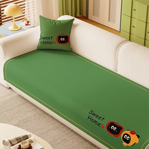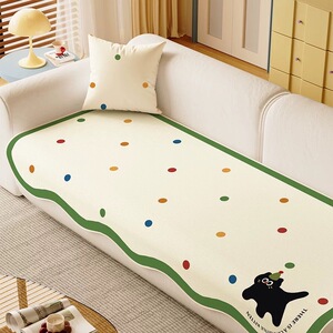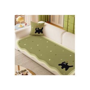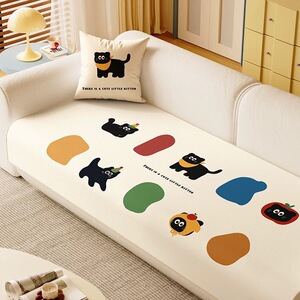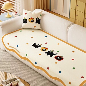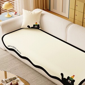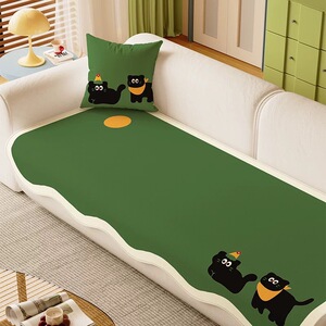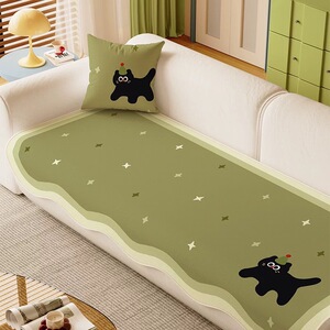卡通小黑猫沙发坐垫雪尼尔夏季透气吸汗防滑空气棉硅胶底冰丝坐垫