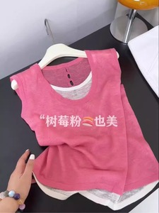 韓国風フェイクツーピーススプライシングノースリーブベスト女性の夏の新しいデザインニッチバック中空スリムトップ