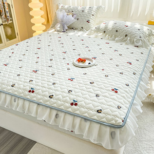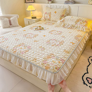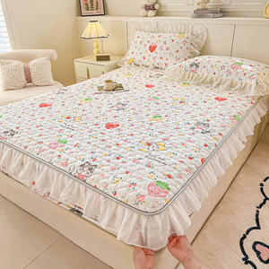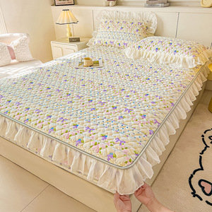 母子クラスA 韓国風レースクラウドコットンキルティングベッドシーツ3点セット 四季マットレスプロテクター シングルピースベッドシーツ