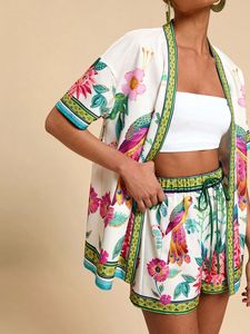 2025年ホットスタイルヨーロッパとアメリカのファッショナブルなツーピースセット、トロピカルプリント半袖トップとショートパンツ、新しいカジュアルスタイル
