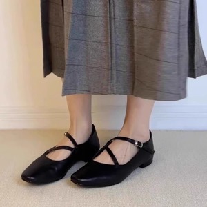 羊皮版~真皮简约包头交叉带浅口软底单鞋女时尚休闲通勤玛丽珍鞋
