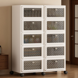 中世スタイルの収納キャビネット引き出し型リビングルーム多層スナック収納キャビネットプラスチック子供のおもちゃ収納キャビネット