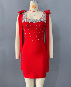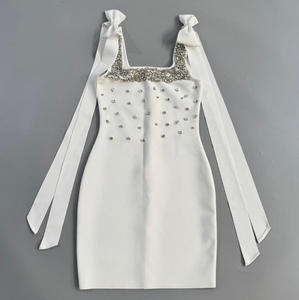 重工镶钻小众设计款礼服小黑裙气质绷带连衣裙新款修身派对女装