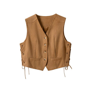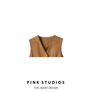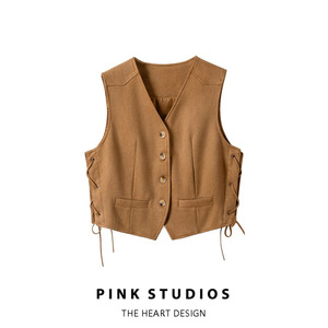 复古麂皮绒重工马甲女春秋美拉德外搭v领绑带短款叠穿单排扣背心