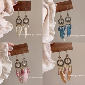 スーパーフェアリータッセルイヤーフック夏レトロエスニックポーシー s925 シルバーイヤリング旅行写真撮影新しい中国風の羽のイヤリング