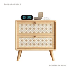藤编床头柜实木樱桃色胡桃色原木色北欧简约诧寂风迷你木制储物柜