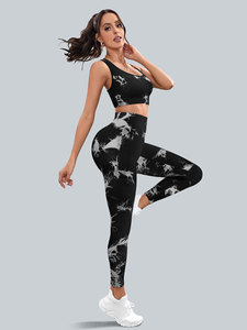ヨーロッパとアメリカのクロスボーダータイトフィットヒップリフティングハイウエストパンツとブラタイダイコンビネーションツーピーススーツ