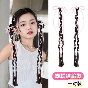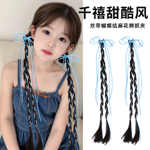 女童甜酷风麻花辫抓夹儿童双马尾蝴蝶结飘带假发辫子成人发饰头饰