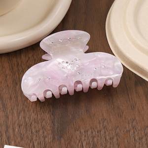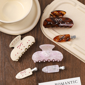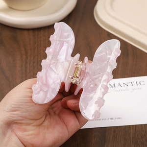 韓国版の新しいアセテートドットリボンクリップピンクシームレスヘアクリップハイエンド気質サメクリップ
