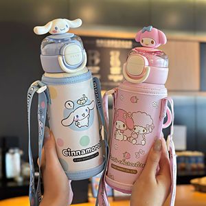 サンリオファミリーシリーズ スターウィッシュカップ ダブルドリンク 学生魔法瓶カップ 調節可能なカップロープ 独立したカップカバー ウォーターカップ
