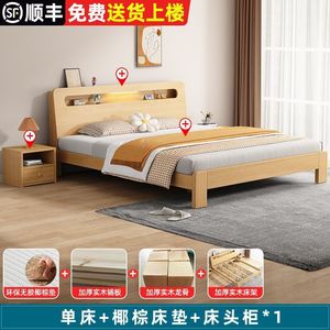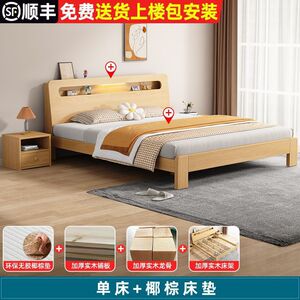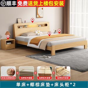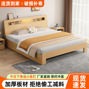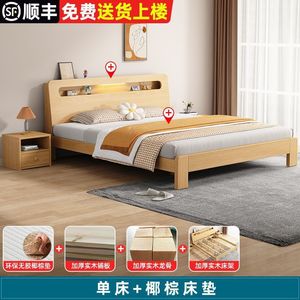 实木床现代简约1.8×2米家用双人床主卧北欧1.2m出租屋单人木床架