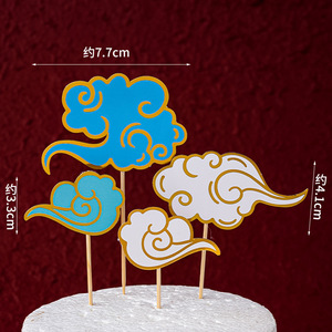 レッドゴールドスプラッシュウェーブ中国風誕生日ケーキインサート縁起の良い雲雲高齢者の誕生日デザートテーブルベーキングインサート