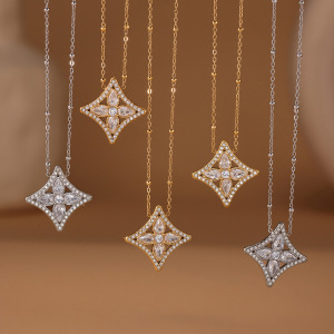 TXP294-スチールカラー 5A ジルコン ネックレス 42+5cm