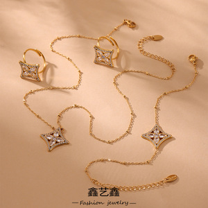 Xinyixinxian スーパーフラッシュ 5A ジルコン老眼フルダイヤモンドブレスレットネックレスリングセットステンレス鋼素材 18k リアルゴールドメッキ