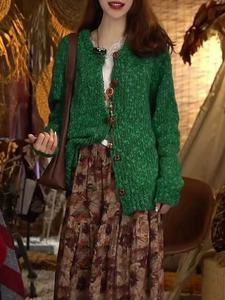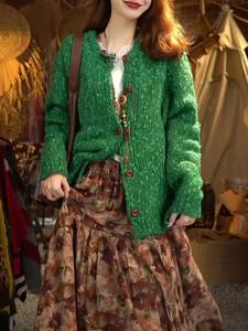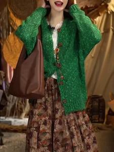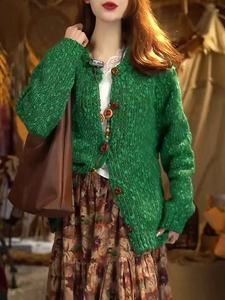 韩系复古高级祖母绿羊毛毛衣女2025新款百搭宽松针织开衫软糯外套