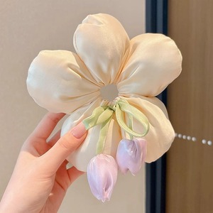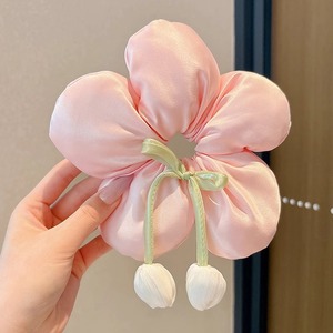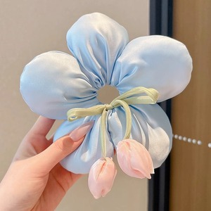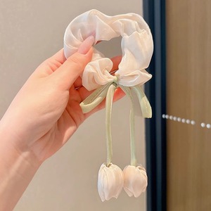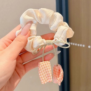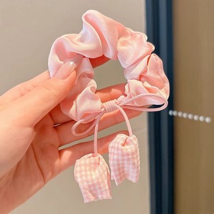Yu Shuxinと同じスタイルのチェック柄チューリップヘアゴム、女性用韓国風優しい高弾性ポニーテールボールヘアロープ