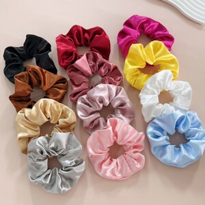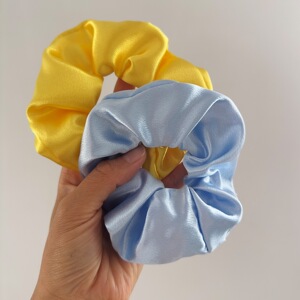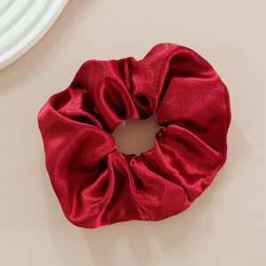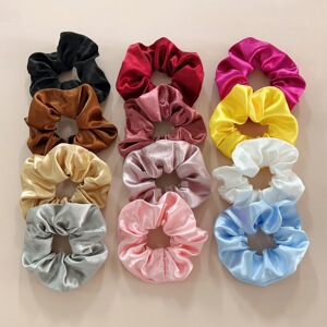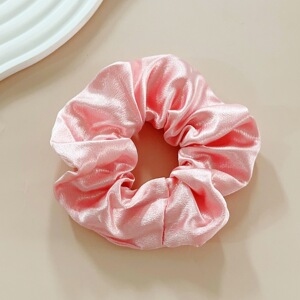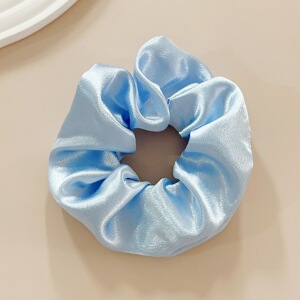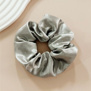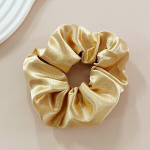 後頭部に結ぶ大きな12cmのクリームサテンプリーツヘアゴム、優しく万能な女性用ヘアアクセサリー