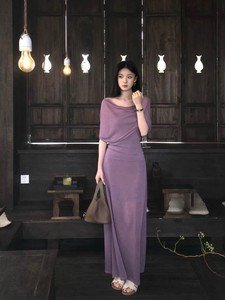 夏の新しいスタイルの怠惰なミニマリストファッションワンショルダールーズスリミングパープルトレンディトップスとスカート