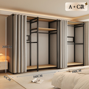 ワードローブ一体型組み合わせ寝室ホームI型クローク簡単組み立て金属ワードローブ厚みのある全鋼フレーム