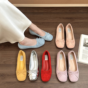 [SSBL] 優しいリボンラウンドトゥ浅口シューズ女性用 2025 夏レトロひょうたんシューズレディビーニーシューズトレンディ