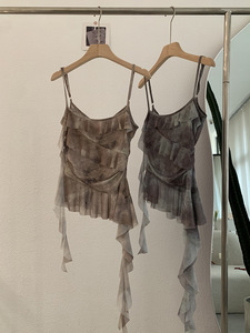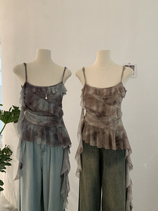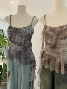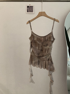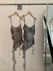 Omalai 不規則なフリルキャミソールレディース夏ウエスト痩身タイダイデザイントップ 3957