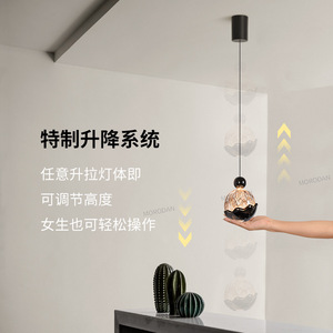 卧室床头小吊灯意式极简轻奢高级感卧室灯具客厅简约现代可升降灯