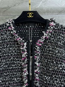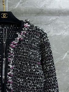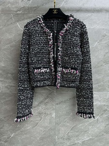 24年秋冬新款高级进口V领粗花呢高定彩宝重工小香风外套上衣开衫
