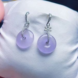 ミャンマー天然翡翠老坑アイスバイオレット女性の安全バックルイヤリングアイスパープル新しい翡翠イヤリングジュエリー