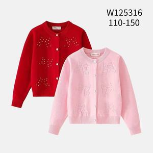 貿易子供服 2025 秋冬小中型子供服ラウンドネックカーディガン綿ニットカーディガン女子学生セータースモールコート