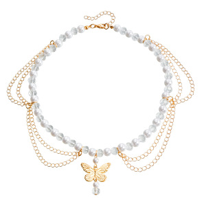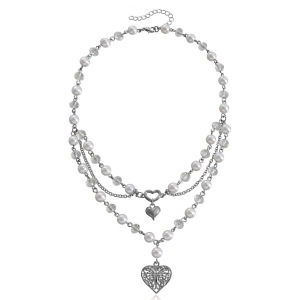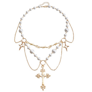 パールセーターチェーン卸売 欧米越境クロスネックレス パンク多層重ね付けライトラグジュアリーニッチ鎖骨チェーン女性用