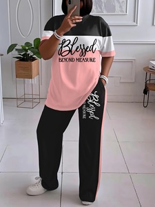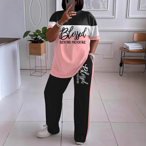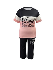 【外贸热卖款】欧美风短袖长裤两件套舒适时尚宽松百搭字母印花