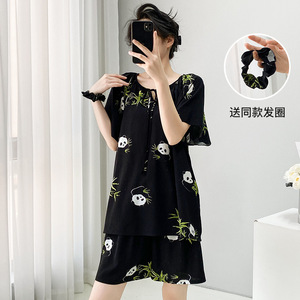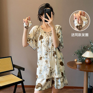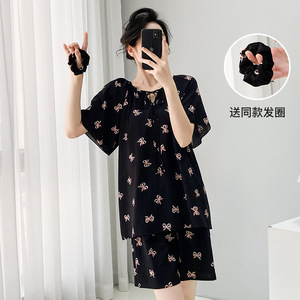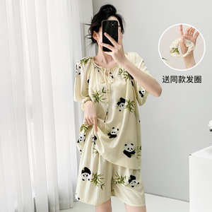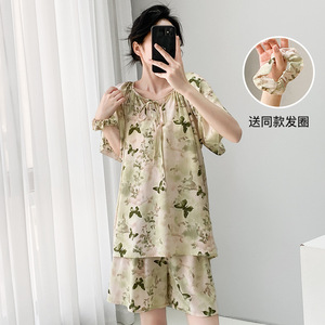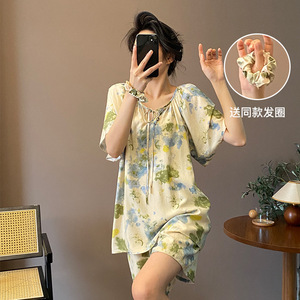 [アンチバンプ裏地付き]半袖ショーツホームウェアスーツレディースコットンシルク2025新しいパジャマカジュアルで屋外で着用可能