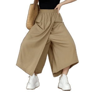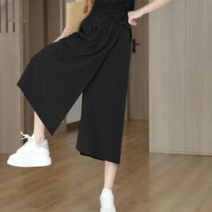 アイスシルクカジュアルスカートパンツ女性用 2025 夏薄いドレープスリムワイドレッグパンツ小柄な人不規則な 8 点ミッドパンツ