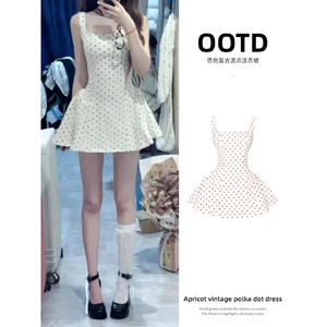 法式波点吊带连衣裙女夏季无袖方领收腰长裙2025新款海边度假裙子