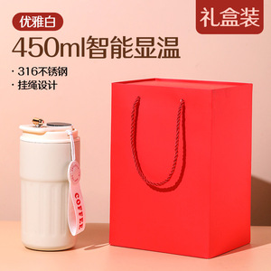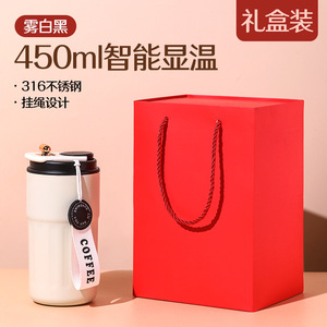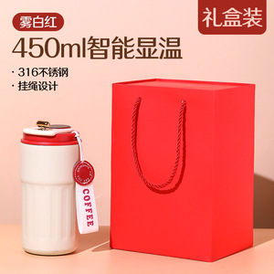 【450ml レッド+ギフトボックス】温度表示コーヒーサーモカップ